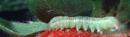 Es una oruga que se alimenta de las hojas, causando grandes agujeros y daños en el follaje, lo que afecta el crecimiento de la lechuga.