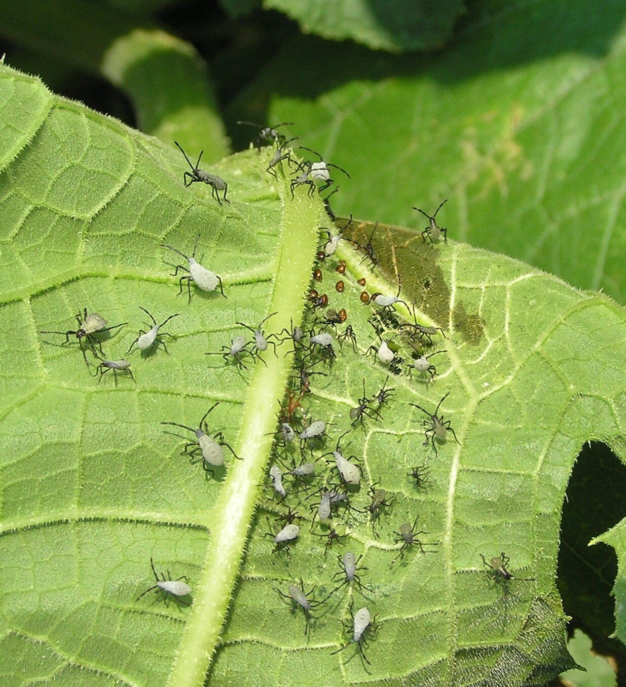 Es un insecto que chupa los jugos de la planta, provocando manchas y deformaciones en las hojas.